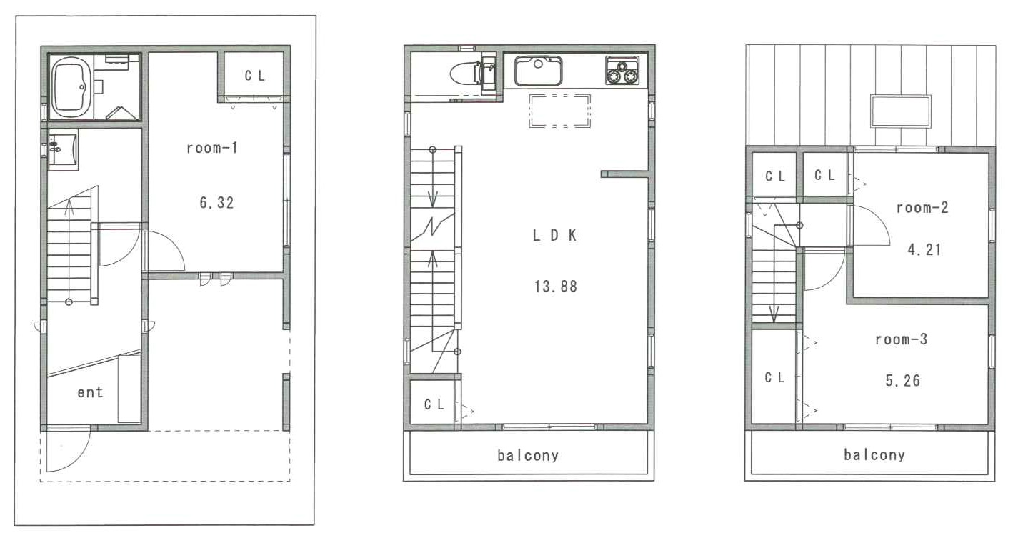 | 新築戸建 | 3LDK | 3階建 | 73.04㎡ 49.34㎡ |
