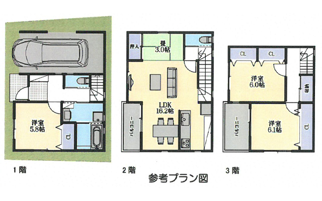 | 新築戸建 | 3SLDK | 3階建 | 97.00㎡ 60.92㎡ |
