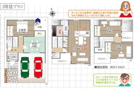 | 新築戸建 | 4LDK | 2階建 | 88.40㎡~㎡ 77.60㎡ |
