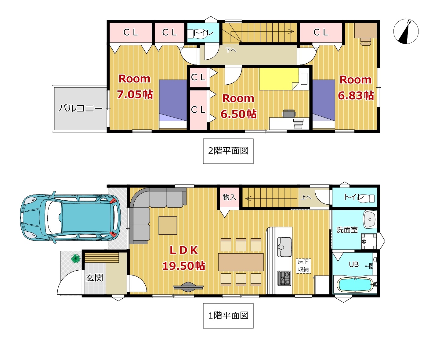 | 新築戸建 | 3LDK | 2階建 | 93.51㎡ 84.57㎡ |