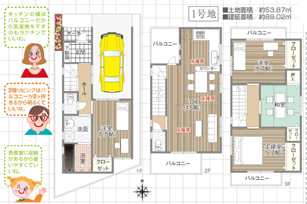 | 新築戸建 | 4LDK | 3階建 | 89.02㎡~㎡ 53.87㎡~㎡ |
